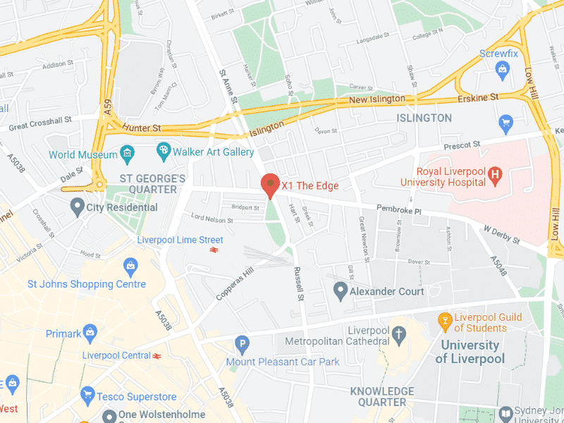 These perfectly situated student flats are only an 8-minute walk to the University of Liverpool and Liverpool John Moores University. A 2-minute walk to Liverpool Lime Street Station, X1 The Edge is the perfect location.Â